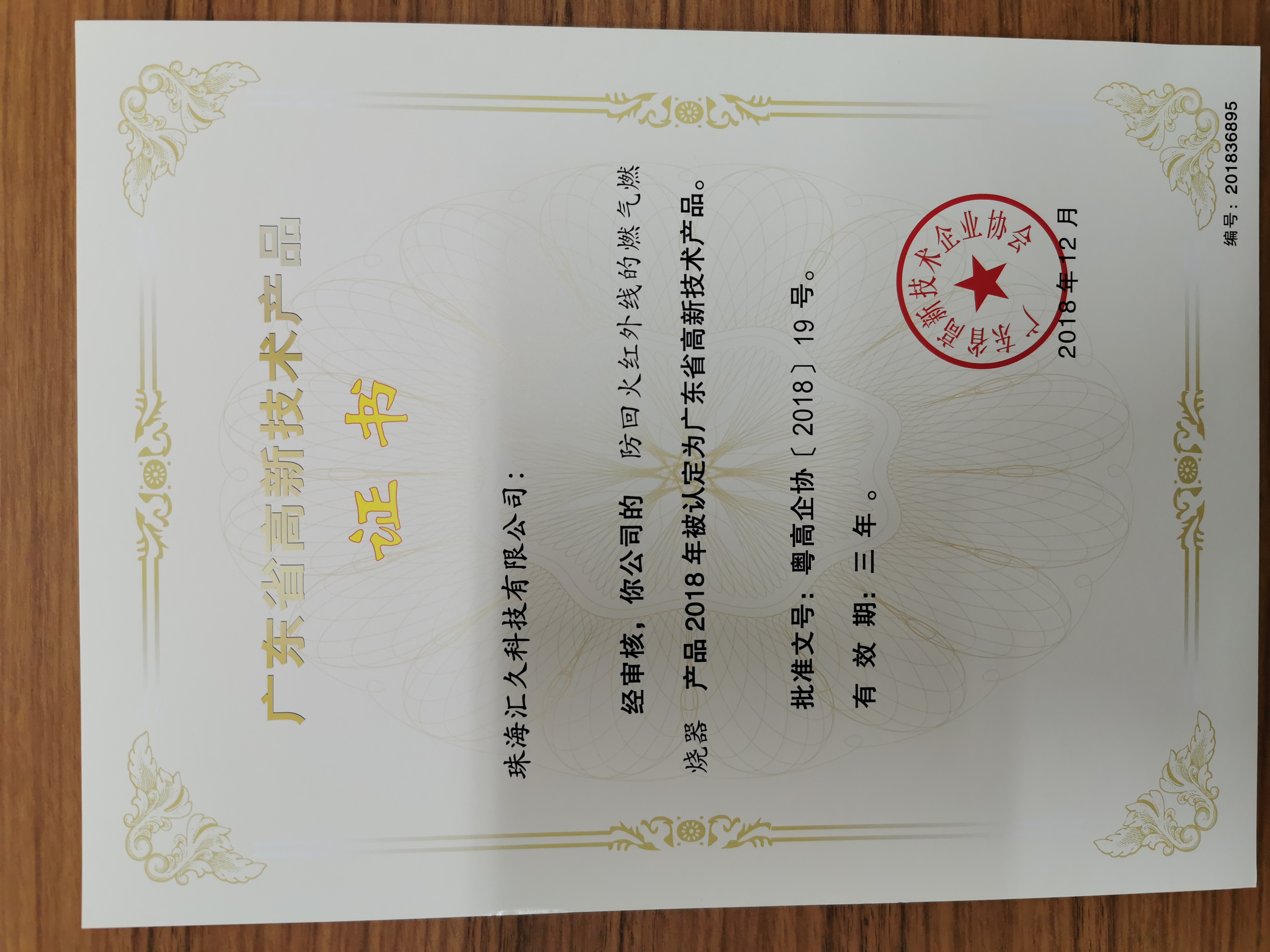 珠海汇久科技有限公司有7种产品获得广东高新技术产品证书
